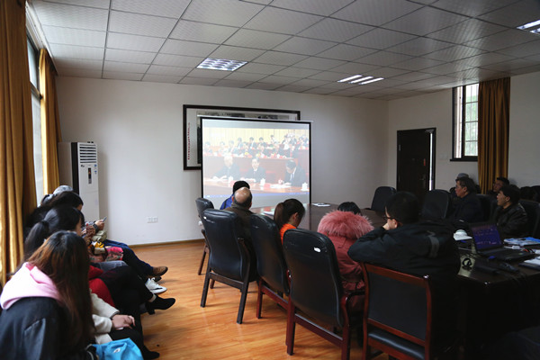 图为生物资源与环境科学学院师生在院会议室收看大会 孙立青摄