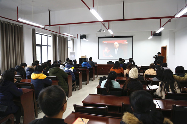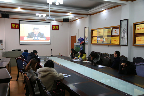 图为数学与统计学院师生在院会议室收看大会 孙立青摄