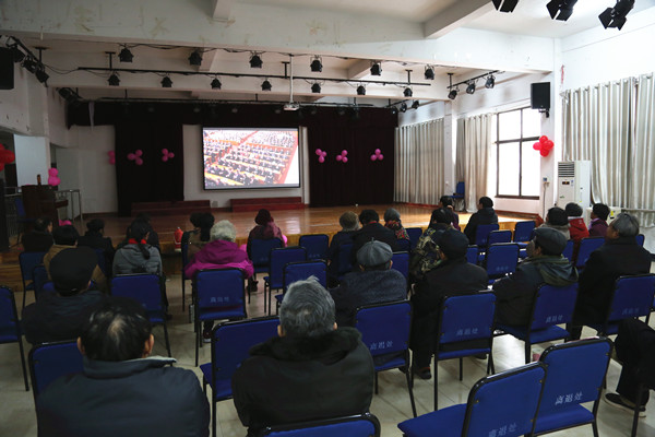 图为离退休教师在老干活动中心大会议室收看大会 孙立青摄