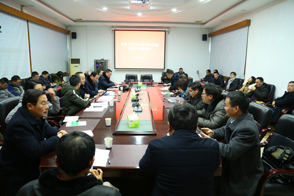 白晋湘在会上讲话。他表示2019年学校将全面组织国家课题申报工作,请相关部门全力配合、支持这次工作。同时,他一一核对了各学院的应报课题数目和实际课题申报数量,并指出各学院的不足之处,要求增加课题申报数量。