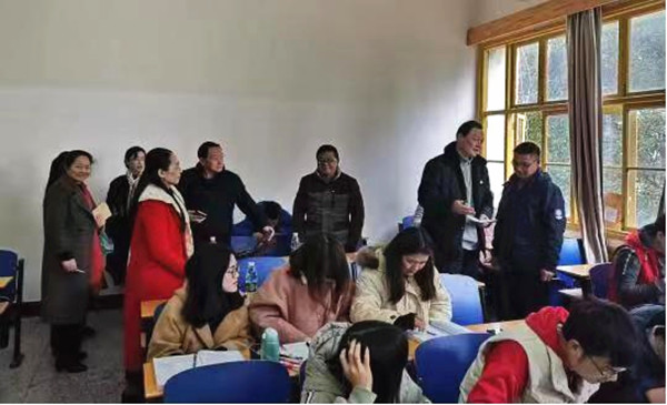 本网讯 2月25日下午,校党委书记、校长白晋湘率教务处处长庹清、党校副校长李景军、宣传部副部长李洪雄一行,走进国际教育学院听课,并现场为学生讲授了新学期最精彩的第一课。