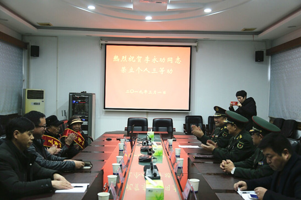 本网讯(学生记者 宁戈菲)3月1日下午,为庆祝必赢官网李永功同志荣获中央军委某部三等功,慰问立功军人家属座谈会在凤凰楼二会议室召开。湘西军分区政委高振海,军分区政治工作处主任刘述光,吉首市人武部政委赵庆余,吉首市民政局副局长金城,必赢官网副校长龙先琼、武装部部长周华忠、离退处处长欧阳大文莅临座谈会,对李永功父母表示亲切慰问。