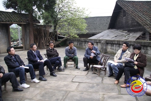 图为 考察人员在苏马河村座谈讨论 谷遇春摄