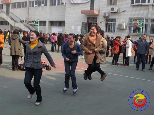 赛场上一片其乐融融荣荣的景象,女教职工们顶着烈日大展身手,既锻炼了身体又联络了感情;负责甩绳的男教职工们也是个个热情高涨,纷纷参加到比赛中来,为整个赛场增添了许多欢呼和掌声。
