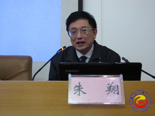 图为 朱翔教授在作报告 苏卫平摄