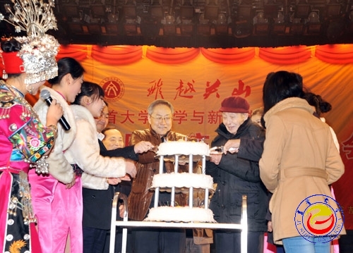 图为 领导、老师、学生共同祝福文学院生日快乐