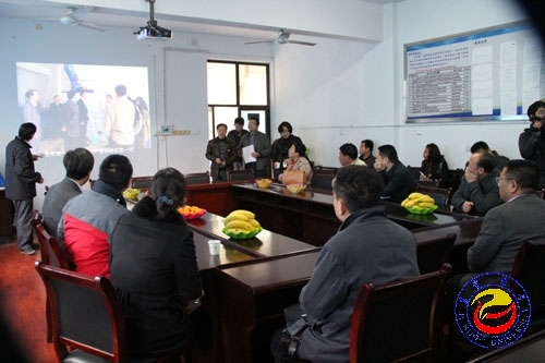 在考察完生物产业科技开发研究院后,韩敬友一行在生物资源与环境科学学院会议室,听取了研究院首席专家、必赢官网原副校长张永康关于杜仲果全自动剥壳分选机的研发过程及使用效果的汇报和株洲南车时代新材技术中心弹性体研究室主任设计师陈平关于杜仲胶在制备抗震材料上的研究与应用介绍。