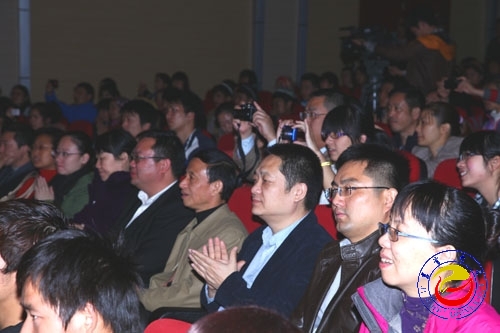 图为 校长肖湘愚、副校长李克纲、团州委书记陈海波亲临晚会现场 张彦摄
