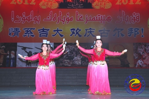 由“走进新疆”、“情系吉大”、“欢庆古尔邦”三个篇章组成的晚会在激情的鼓舞中拉开了帷幕。各具特色的民族歌舞、乐器、小品、T台秀等节目依次精彩上演,别开生面的舞蹈“草原上的婚礼”为观众呈现出欢乐的草原景象,小品“谁是可怜人”以轻松幽默的风格讲述了生活中的道理,极具视觉效果的T台秀让观众一饱眼福,穆斯林同学们还来到观众席上与观众进行互动,优美的舞姿更是博得阵阵掌声与欢笑,观众连连叫好,晚会气氛达到最高潮。