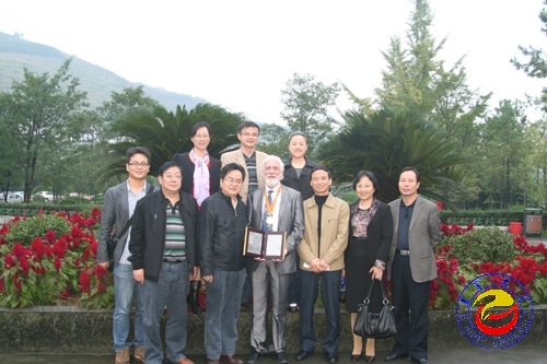 图为 与会领导、老师与约翰老师合影 胡建文摄