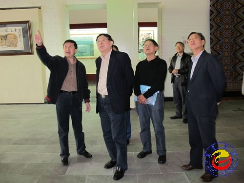 图为 校领导陪同专家参观黄永玉艺术博物馆