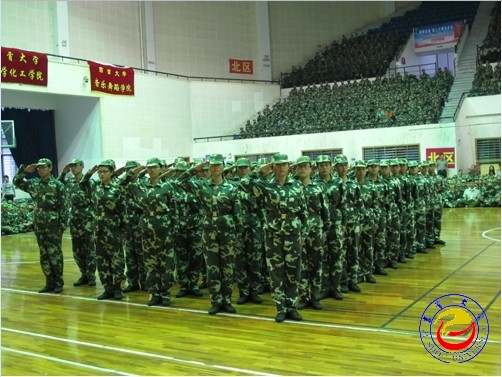 上午八时,随着庄严肃穆的国歌的奏响,2012级新生军训会操正式开始。校军训团副团长孔云辉向肖湘愚校长报告军训队列情况后,各学院新生军训方阵进行了分列式表演,他们昂首阔步、步伐整齐,为领导、老师及同学们奉献了一场精彩的表演。