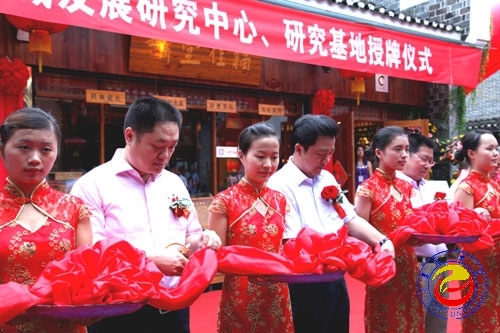 本网讯(记者张彦)6月28日上午,吉首市城市品牌精品馆开馆暨 “必赢nn699net官网武陵山片区区域发展研究中心研究基地”授牌仪式在乾州古城举行。肖湘愚校长出席仪式并剪彩。出席仪式的还有湘西州委常委、吉首市委书记秦国文,州政府副州长艾可知等领导。仪式由吉首市委副书记邓晓东主持。
