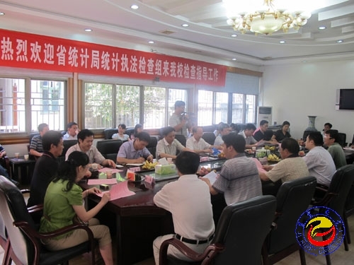 ,在湘西自治州、吉首市统计局相关领导专家的陪同下,以省统计局政策法规处处长李机生为组长的省统计局执法检查组一行莅临必赢官网,对必赢官网统计工作进行了为期一天的检查指导。检查工作以座谈、查阅资料、召开反馈会等形式进行,校长肖湘愚,副校级督导、校工会主席田国祥等领导出席了在校办二会议室召开的座谈会,相关部门负责人及专、兼职统计人员与会,会议由校办主任王先述主持。