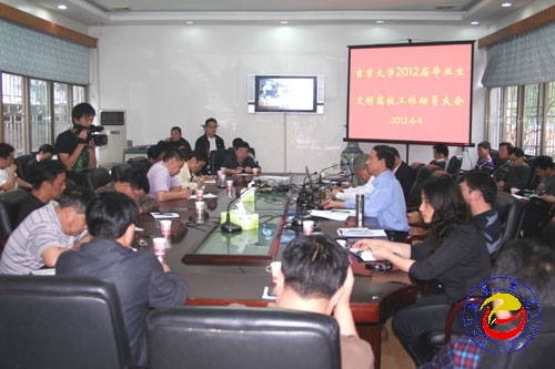 动员会上,学工部部长田筱鸿解读了《吉首大首2012届毕业生文明离校工作方案》,并就毕业生离校的保卫、宣传、派遣、后勤服务等方面的工作进行了布置和安排。校办副主任李荣光对毕业典礼暨学位授予仪式的工作进行了分工,并提出了具体要求。