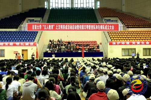 在庄严的国歌声中,大会正式开始。白晋湘宣读了校园文明督察队和先锋队成立文件。游俊、肖湘愚分别为校园文明督察队和先锋队授旗。