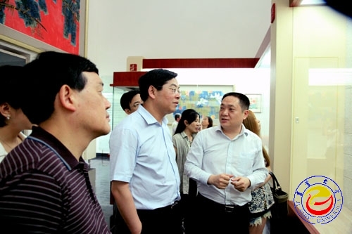 霍步刚认真欣赏和品味了博物馆内艺术人生、书画天地、收藏世界等五大展厅的全部字画、雕塑和收藏品。在参观过程中,肖湘愚校长不时对博物馆讲解员的讲解进行补充和完善,并与霍步刚一行热情交流。
