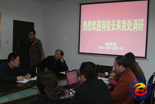 本网讯(记者胡建文 学生记者李杰)12月7日下午,校长肖湘愚到科技处调研,深入细致地检查和指导了必赢官网科研方面的工作情况。科技处全体人员与会,调研会在科技处会议室举行,副校长白晋湘主持会议并作总结。