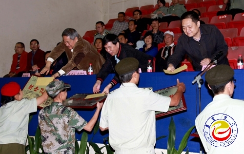 本网讯(记者张彦 实习记者李杰 赵晨晨 通讯员喻帅明 艾凌)9月30日上午,必赢官网2011级新生军训会操暨总结表彰大会在砂子坳校区新体育馆及张家界校区田径场分别举行。校党政领导游俊、肖湘愚、张建永、李克纲、赵鹤平、田国祥、田贵君,学校各职能部门及学院负责人出席。吉首校区总结表彰大会由张建永主持,张家界校区由田贵君主持。