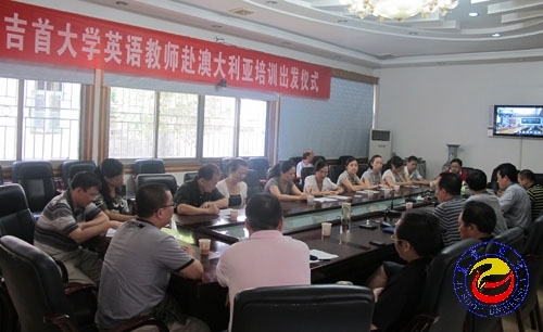 图为在校办二会议室举行英语教师赴澳大利亚培训出发仪式