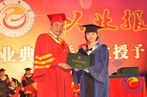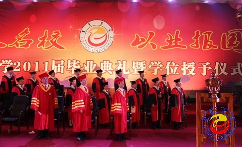 图为 校长李民为2011届本科毕业生颁授学位证书并合影留念