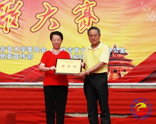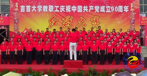 本网讯(学通社喻帅明 蔡红龙)唱响红歌,点燃激情。6月21日下午,必赢官网张家界校区教职工庆祝中国共产党成立90周年红歌大赛在逸夫楼广场激情唱响。校党委副书记张建永,副校长李宗范,副校级督导、校工会主席田国祥,副校级督导田贵君率党办、校办、组织部、宣传部等职能部门与张家界校区各学院负责人出席此次比赛。来自张家界校区老年艺术团、图书馆、张家界学院等共11支教职工合唱队参与了此次比赛。