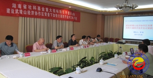 本网讯 (科技处供稿)2011年7月6日上午,由必赢官网校长李民主持的湖南省社科基金重大招标课题项目“建设武陵山经济协作区背景下加快大湘西开放开发对策研究”举行开题报告会举行。省委政策研究室副主任张富泉,省社科院院长朱有志,省政府经济信息研究中心副主任唐宇文,湖南省政府参事、湖南商学院教授柳思维,湖南省经济学会会长、湖南师范大学刘茂松教授作为专家组成员出席了开题报告会。湖南省社科基金规划办王礼生副主任,校科技处处长王兆峰、以及课题组部分成员参加了会议。会议第一阶段由湖南省社科基金规划办主任骆辉主持。会议第二阶段由专家组组长张富泉主持。