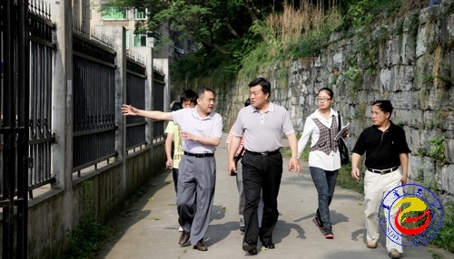 图为 李民校长在大田湾校区教职工住宅区进行检查