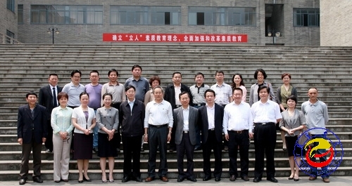 本网讯(记者张彦 实习记者周丹) 5月6日上午,全国人大常委会委员、民盟中央副主席索丽生,全国政协常委、民盟中央副主席郑惠强一行在省委统战部副部长邓焕生,民盟省委专职副主委兼秘书长汤浊,州委副书记郭建群的陪同下来校参观。在校党委副书记张建永等人的陪同下,索丽生一行先后参观了总理楼和黄永玉艺术博物馆。
