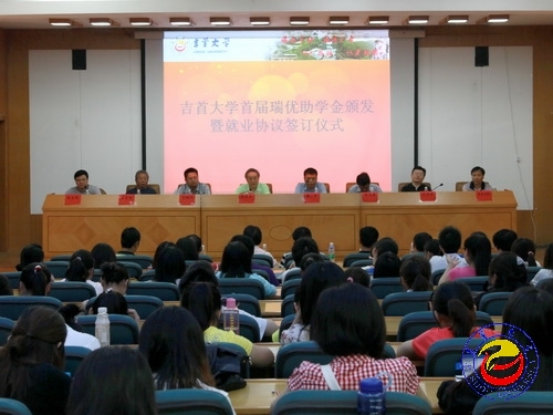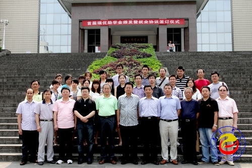本网讯(记者张彦 实习记者丁兰琼 摄影张彦)5月10日上午,必赢官网首届瑞优助学金颁发暨就业协议签订仪式在图书馆学术报告厅举行。商学院肖梅娟等10位同学获得瑞优助学金,商学院2007级莫灿等13位同学与陕西莎能羊乳品有限公司签订就业协议。校党委副书记张建永,原副校长张永康,学工部、商学院、化工学院、医学院主要负责人及莎能羊乳品有限公司负责人等出席本次仪式。仪式由商学院党总支书记张生强主持。
