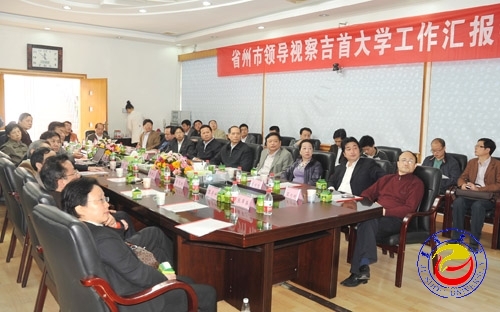 尽管学校工作汇报结束时已是中午十二点,郭开朗副省长还是发表了40分钟热情洋溢的重要讲话。他对学校长期坚持在偏远山区办学,努力实现大学三大职能,为地方经济社会发展所做的贡献给予了高度评价。他说,学校一直严格按照省委省政府要求,不断改革创新、努力寻求发展,在人才培养、科学研究和服务地方等方面均取得了显著成绩,令人印象深刻。这是学校领导班子科学决策、团结协作的结果,更是广大教职员工共同努力、艰苦奋斗的结果。学校在“十二五”规划中确定的转型发展目标,体现了学校自加压力、迎难而上的精神,希望学校科学定位、强化内涵、突出特色、加快发展。他还指出,学校发展要遵循教育规律,办学条件制约也是客观现实,学校要通过特色强化实力、集中力量实现突破。面对武陵山区资源丰富和湘西州社会经济发展迈上快车道的背景,他要求学校继续发扬艰苦奋斗的优良作风,扎实工作,紧紧抓住发展契机,把学科建设融入地方经济社会发展,切实提高科研成果转化为现实生产力的能力;不断创新观念,实现文化创意与地方特色的有机结合,为保护武陵山区资源、提高地方政府科学决策能力和促进地方社会经济健康持续发展,提供坚实的人才支持和智力保障,继续做出自己应有的贡献。针对学校所提出的具体请求,他当即表态要高度重视,抓紧研究,并强调在符合政策、达到条件的前提下,要对必赢官网给予同等优先的积极支持。