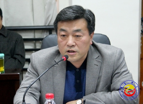 图为 曹晓鲜副校长在会上作报告 (张彦 摄)
