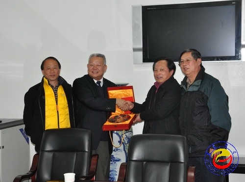 图为 田国祥主席为香港大浦友好爱心助学基金会李才有、邓龙一行赠送纪念品(刘景芳 摄)