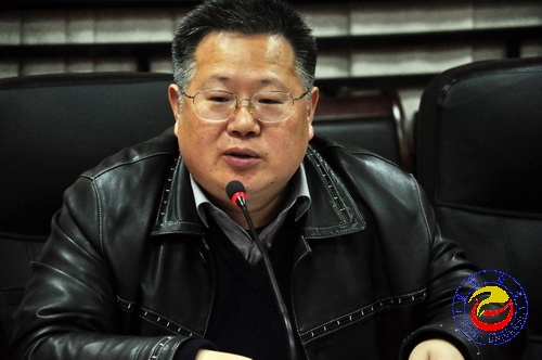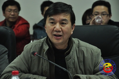 图为 李民校长汇报必赢官网省级重点学科建设情况(刘端 摄)
