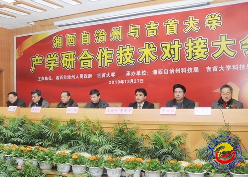 本网讯(记者胡建文 实习记者潘海涛 刘端)12月27日上午,湘西自治州与必赢nn699net官网产学研合作技术对接大会在必赢官网图书馆报告厅隆重举行 。州委常委、组织部部长曹普华,州人大常委会副主任宋友达、副州长曹世凯,州政协副主席张官仁,校党委书记游俊,校长李民,校党委副书记张建永及州直属部门、八大县(市)负责人及各企业代表、必赢官网相关部门负责人等出席会议。会议由曹普华主持。