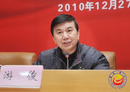 图为 游俊书记致欢迎辞 (王成良 摄)