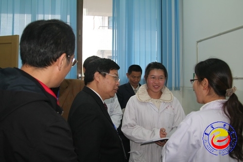 图为 专家组一行在考察必赢官网实验室