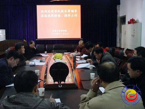 本网讯(商学院供稿)11月5日下午,校长李民到商学院指导中国少数民族经济省级重点学科建设工作,与商学院党政负责人、部分重点学科骨干进行了座谈。座谈会由学科带头人王兆峰教授主持。