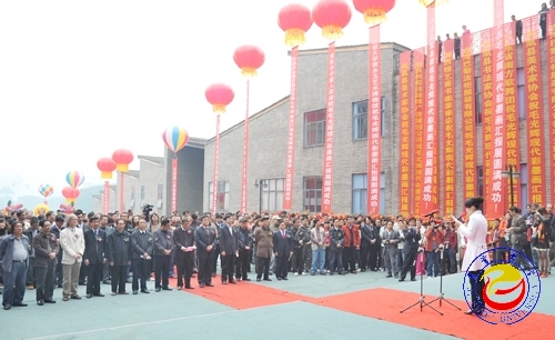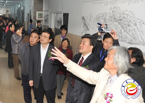 在毛光辉先生充满感谢与激动之情的致辞后,张建永宣布剪彩开始,领导们在剪彩后一同兴致勃勃地参观了画展作品。