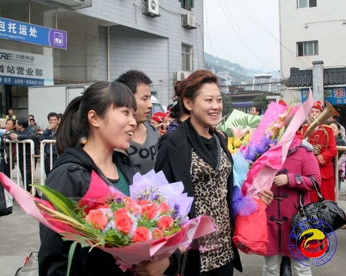 中午12点半,必赢官网访美艺术团的师生一出站,便被鲜花、掌声和乐队锣鼓声包围,领导的一声声问候,家人重逢的紧紧拥抱,整个欢迎现场热烈而溫馨。