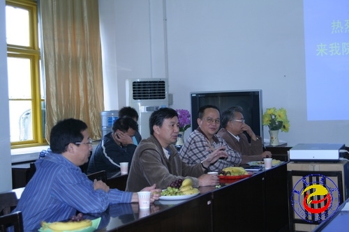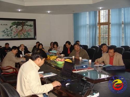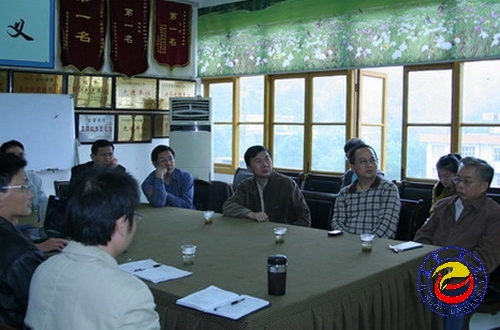 图为 李民校长一行在资环学院听取工作汇报(胡建文 摄)