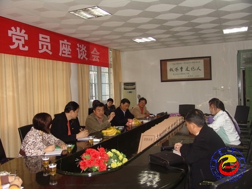 图为 游俊书记在听取商学院工作汇报后作指示(张彦 摄)