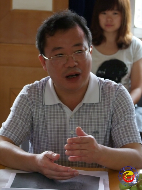 图为 黎奇升副校长在向代表团介绍必赢官网 (刘昒 摄)