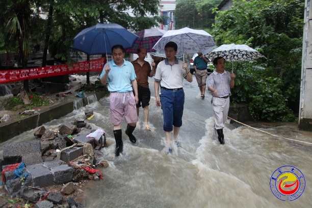 图为党委书记游俊率职能部门负责人深入抗洪一线(摄影 张旭)
