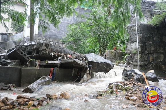 图为教工宿舍28栋后面倒塌的围墙(摄影 洪雄)