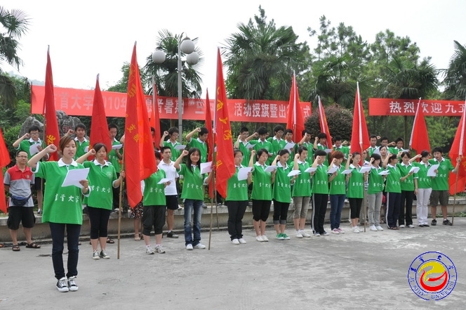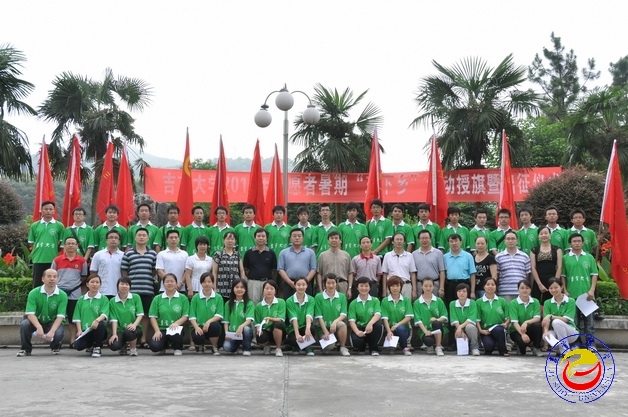 本网讯(记者 胡建文)为配合学校争先创优活动的开展,进一步发挥社会实践在加强和改进大学生思想政治教育中的积极作用,引导广大青年学生在社会实践中认真实践科学发展观,深入了解基本国情,进行正确的社会观察,根据团省委《关于开展2010年湖南省大中专学生志愿者暑期文化科技卫生“三下乡”社会实践活动的通知》的文件精神,必赢官网继续积极组织开展学生暑期社会实践活动。7月15日上午,以“服务新农村,建设新家园”为主题的必赢官网2010年志愿者暑期“三下乡”社会实践活动出征暨授旗仪式在砂子坳校区隆重举行。
