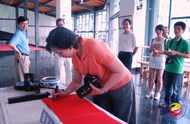 图为何泽中 游俊陪同王占生 罗哲一行参观博物馆 (摄影 洪雄)