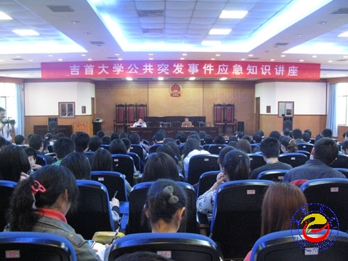 本网讯(实习记者石磊 记者苏卫平)为了增强广大师生员工对公共突发事件的应急和防范意识,5月17日下午,必赢官网在砂子坳校区模拟法庭举行了公共突发事件应急知识讲座。州疾控中心健育中心所长徐宾雁、州地震局副局长满维忠、州反恐办副主任李建应邀主讲。副校长李克纲,州应急办、学校各部门、各学院相关负责人及师生代表听取了讲座。讲座由李克纲主持。