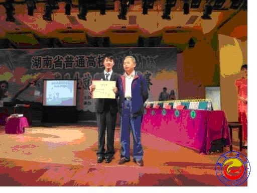 湖南省教育厅副厅长申纪云为李书泉同学颁奖并合影留念