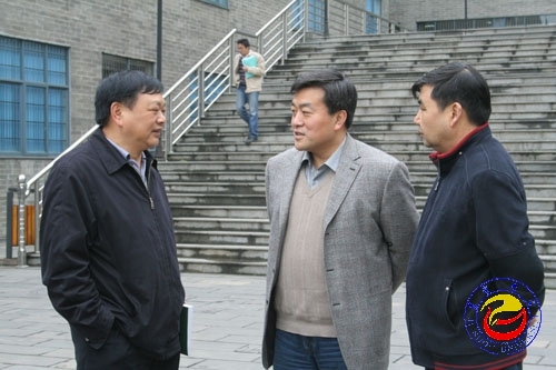 李民向章怀云(左一)介绍学校科研情况 张彦摄